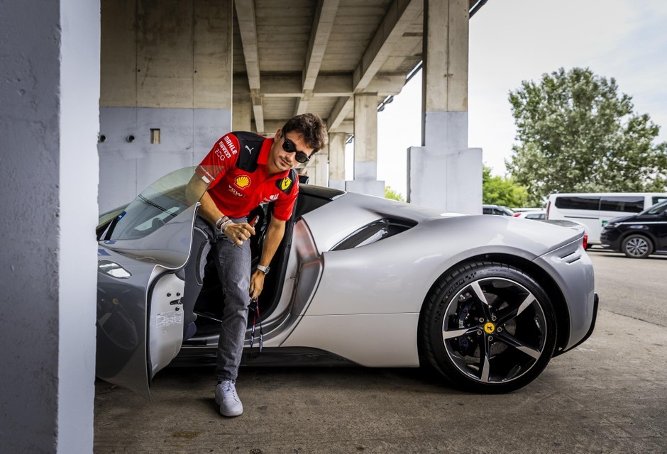 F1-vips zijn gewend pal voor de deur te parkeren, zoals hier Ferrari-coureur Charles Leclerc in Hongarije.©️ foto ANP