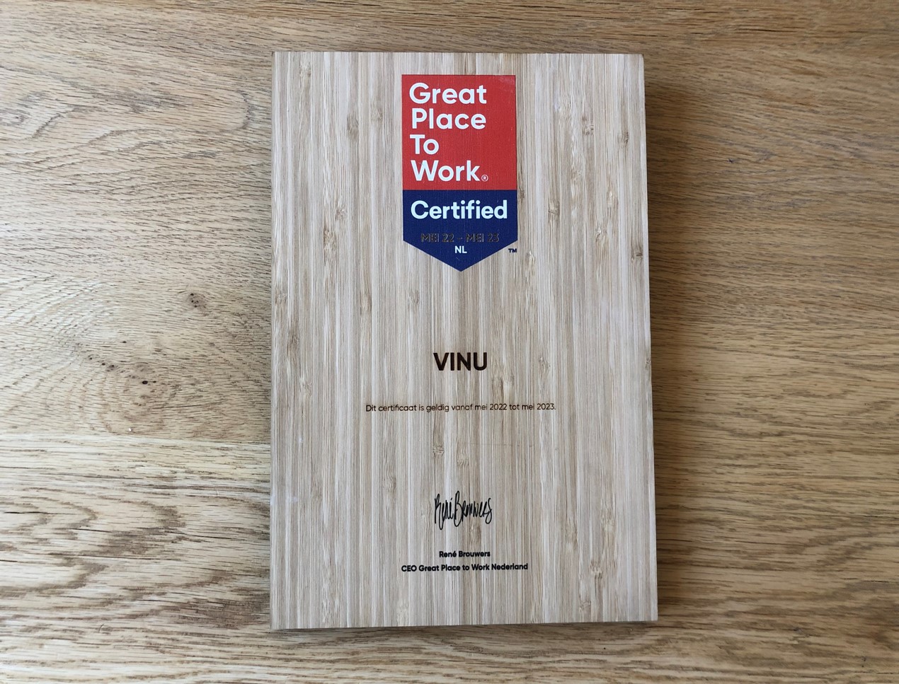 VINU is in 2022 een Great Place To Work traject aangegaan en met succes doorlopen. Sinds mei 2022 heeft VINU het certificaat. Met een jaarlijks actieplan probeert VINU zich nog verder te verbeteren als werkgever.